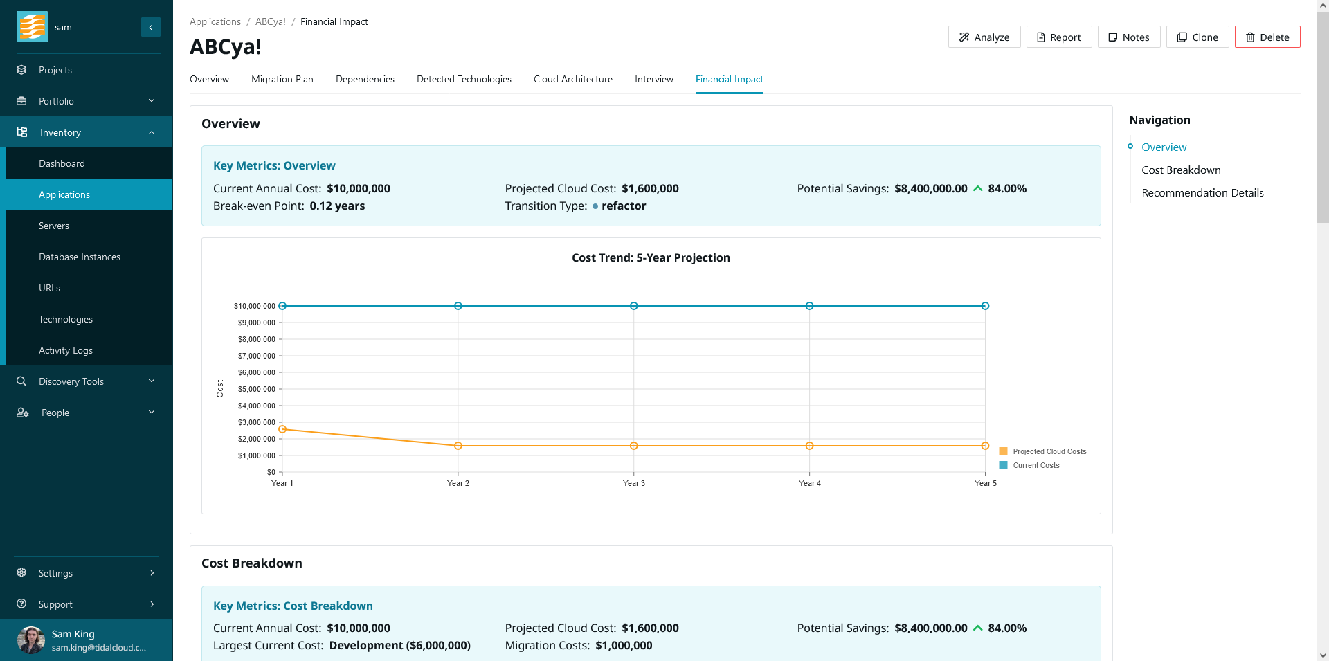 Tidal Accelerator empowers you to construct a compelling business case by visualizing the financial impact of your project. You can find your financial impact report by navigating to a project and clicking the ‘Financial Impact’ tab.
